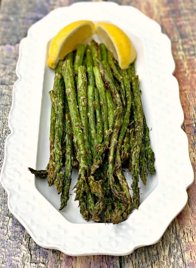 This Quick and Easy Air Fryer Roasted Asparagus is the perfect side dish for any meal. It's ready in under 10 minutes making it perfect for weeknight dinners.