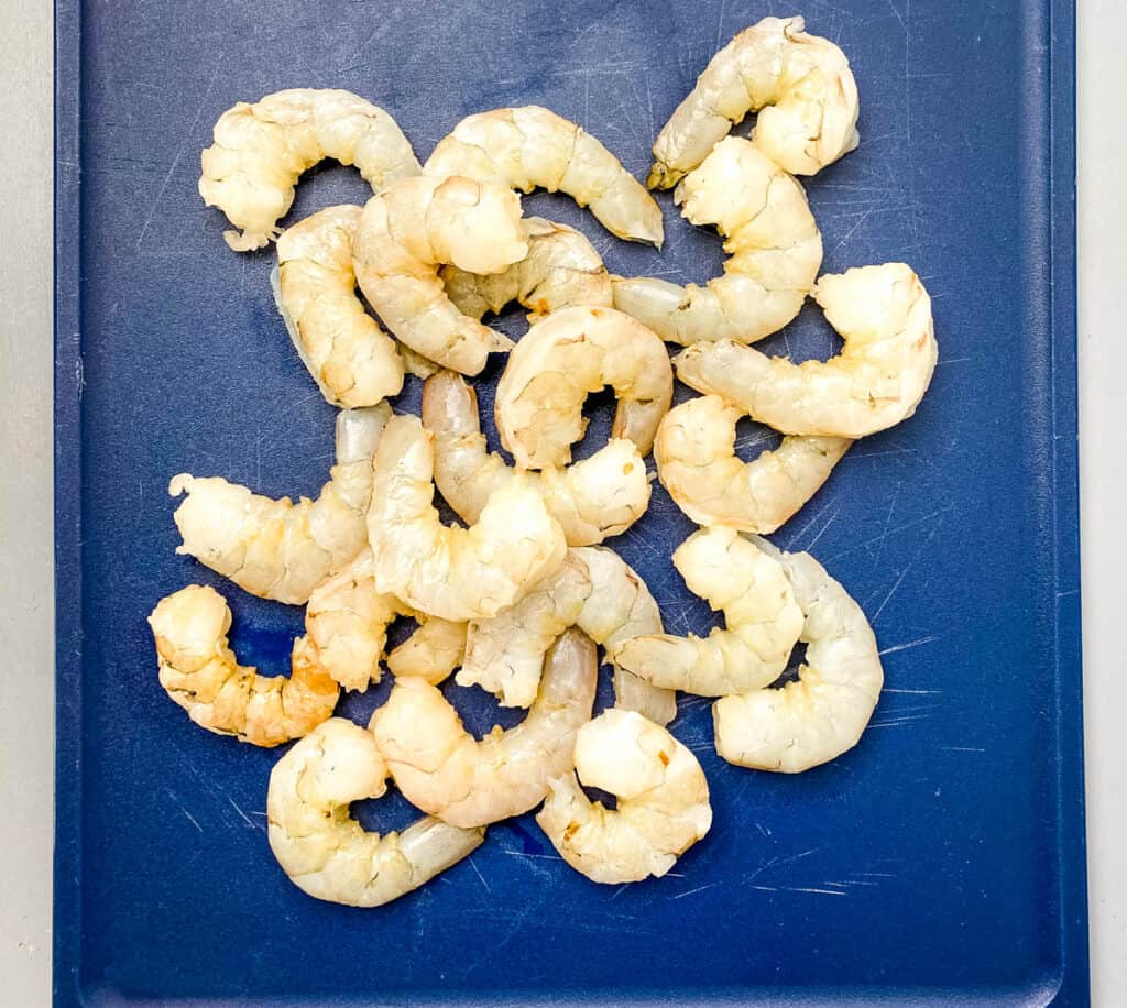 Shrimp can be found at the grocery store in a few different ways. There is raw, pre-cooked, raw and frozen, deveined, tails on, tails off, etc.