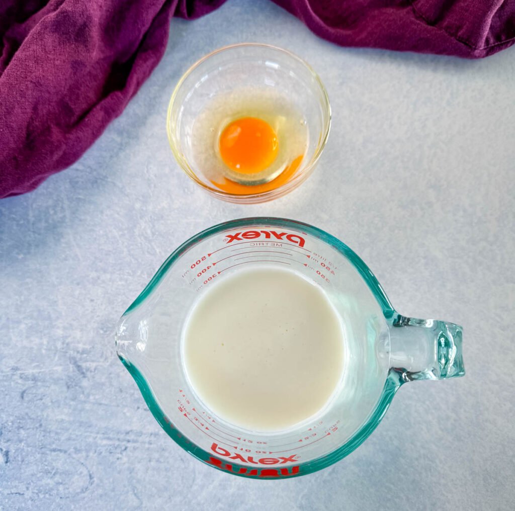 - Add in buttermilk and a beaten egg. Stir to combine.