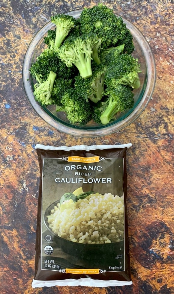 - I used the frozen riced cauliflower from Trader Joe's in this recipe. I allowed it to thaw some at room temperature while I prepared most of this dish.