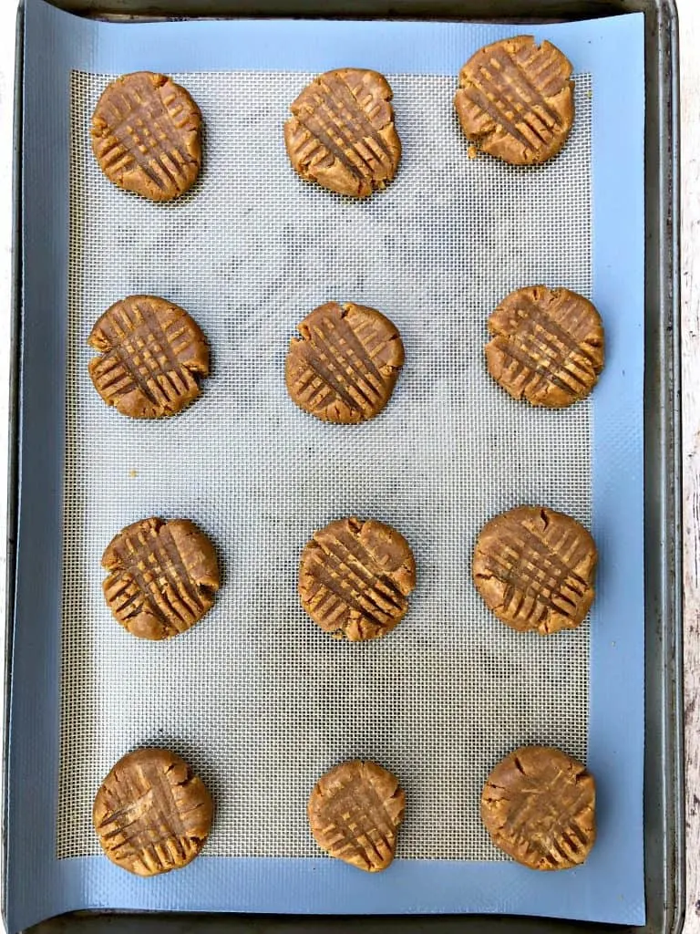 - Flatten with a fork: Use a fork to press down gently on each dough ball, making a crisscross pattern on top.