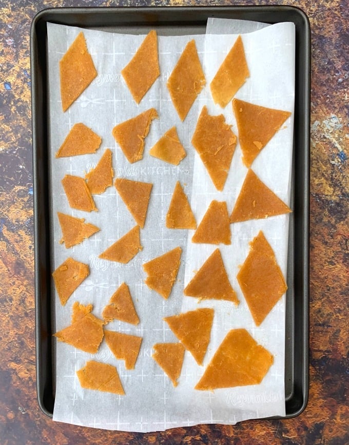 - It may be difficult to get the dough exactly even along the edges. Retain any excess dough and roll it out again to create additional chips, instead of discarding excess dough.