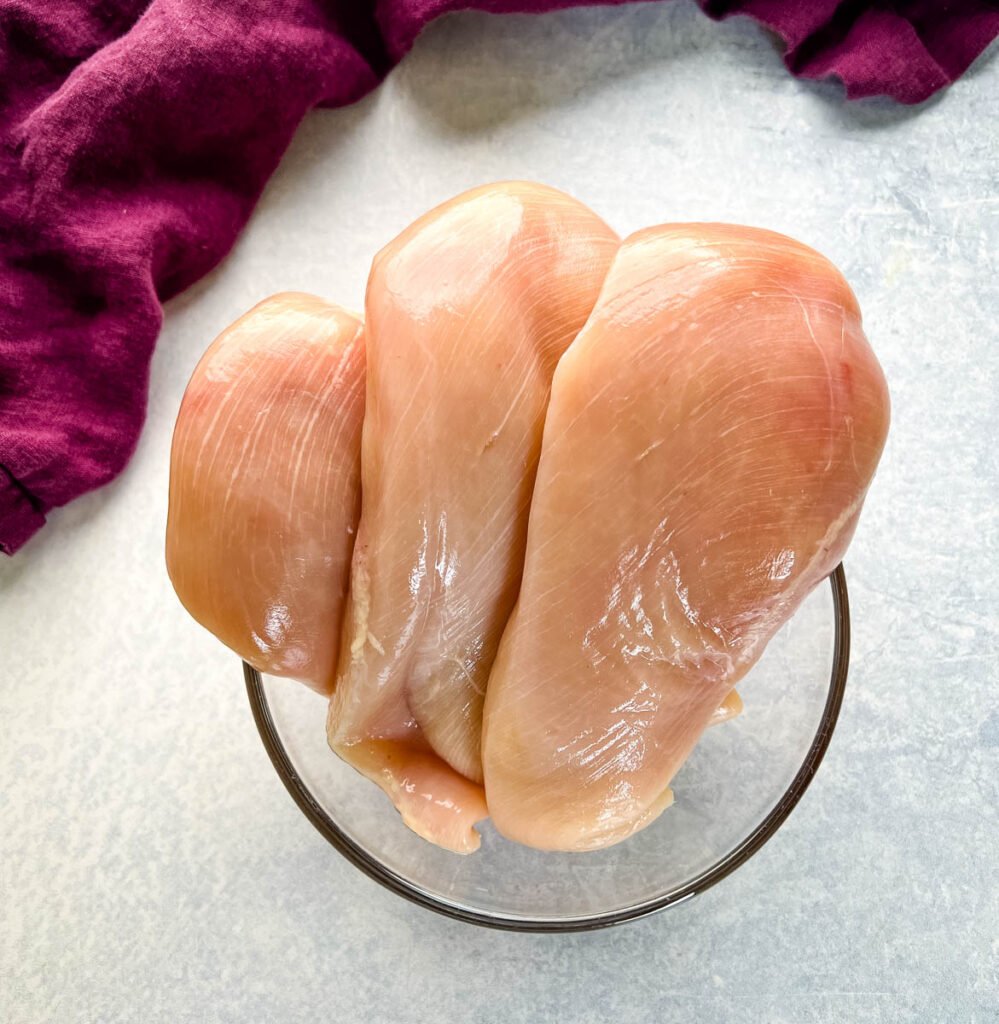 I use skinless chicken breasts. You can also use chicken thighs. Dark meat tends to have more flavor, is more tender, and will follow the same cook time noted in the recipe.