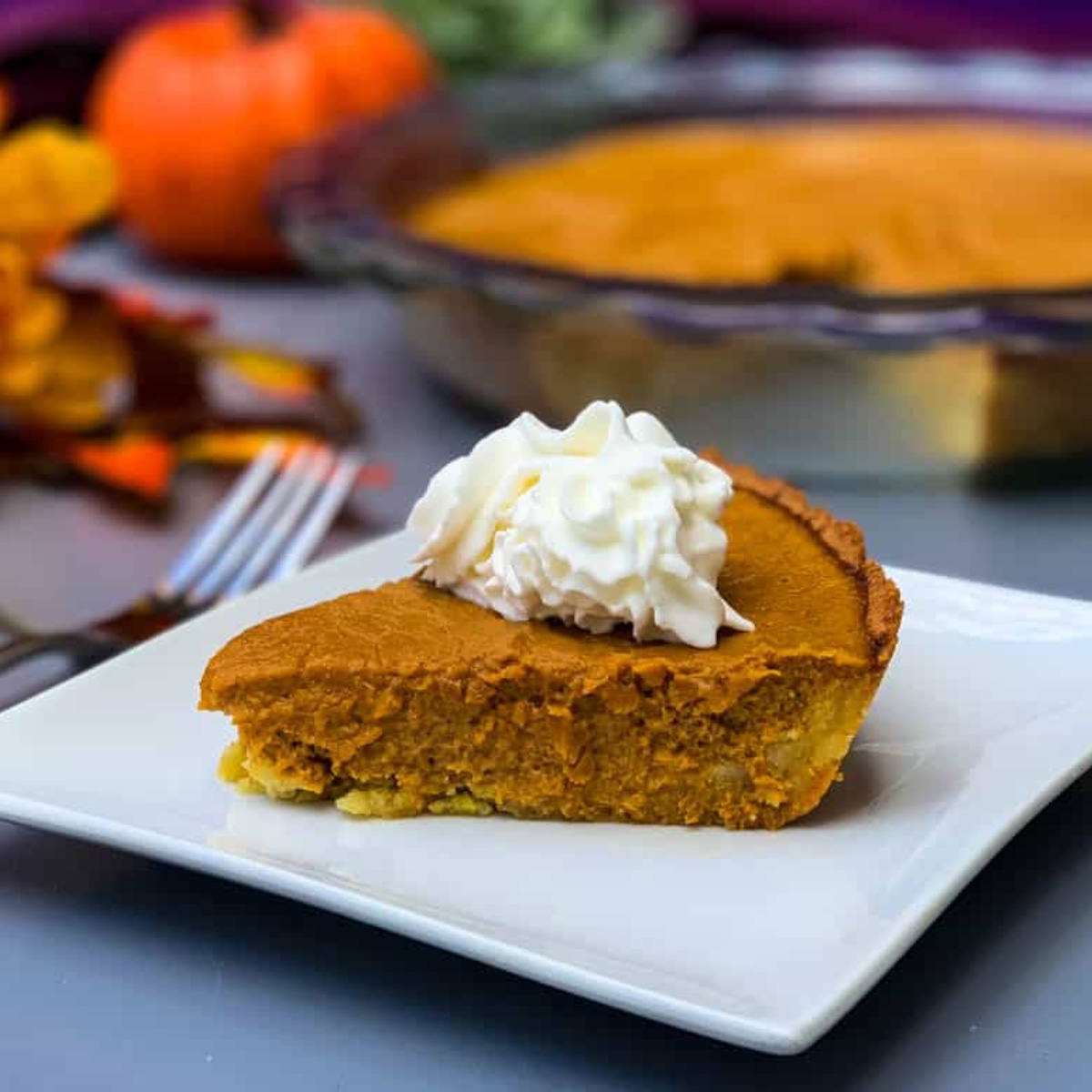 Easy, Keto Low-Carb Pumpkin Pie is a sugar-free dessert recipe perfect for Thanksgiving and the holidays! This dish is gluten-free and prepared with an almond flour crust and pumpkin spice custard filling. You can even make it crustless for a more keto-friendly treat!