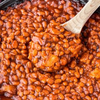 This is truly the best soul food baked beans recipe you will find! It's loaded with hickory smoked flavor, making it perfect for any BBQ or cookout pairing.