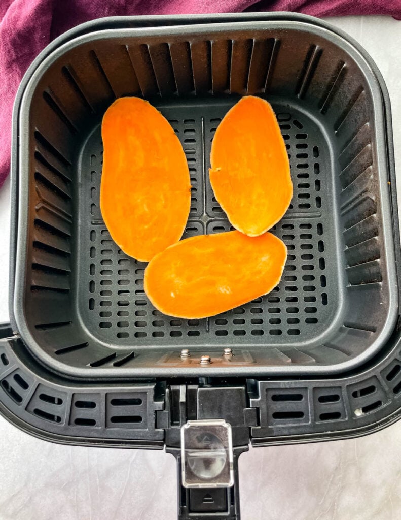 • Place the sweet potato slices in the air fryer basket.