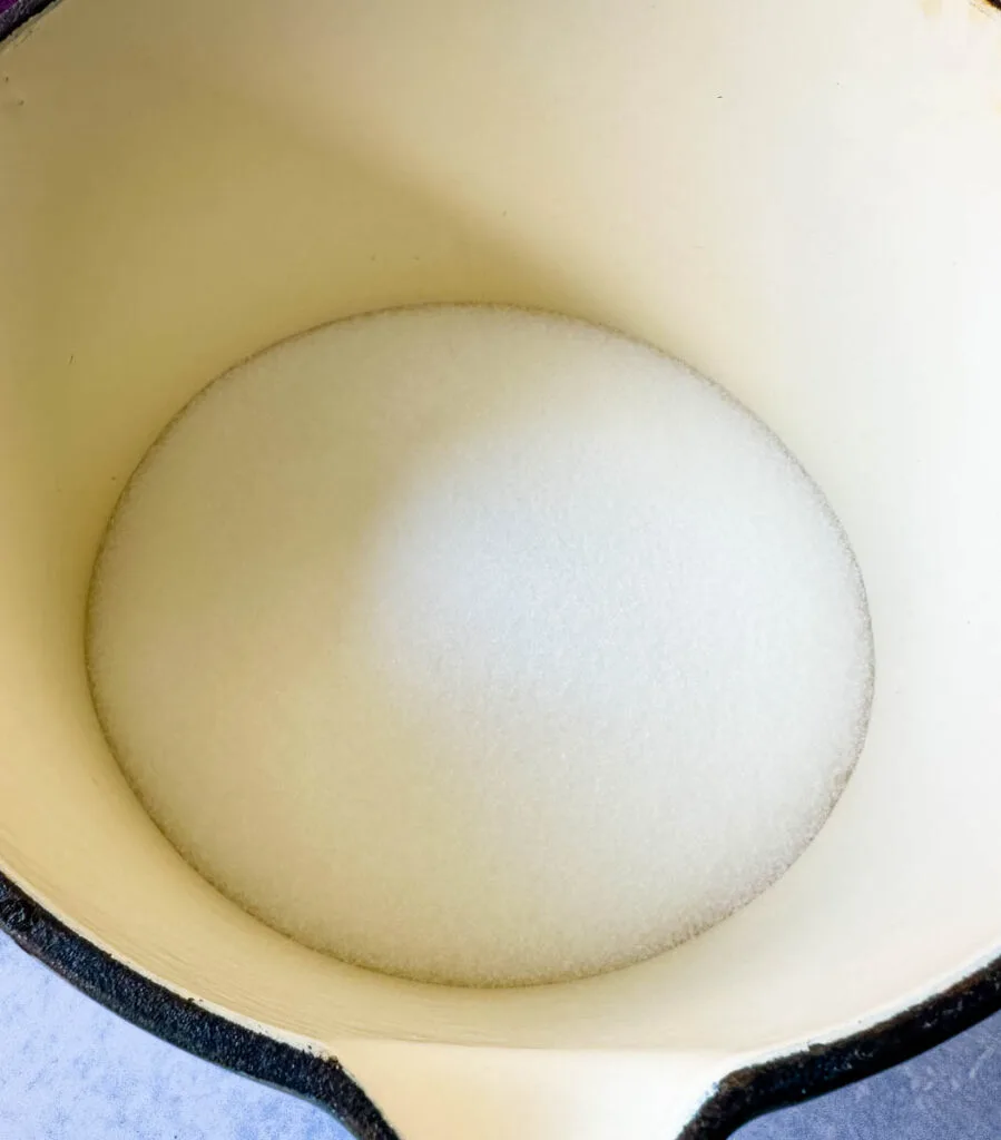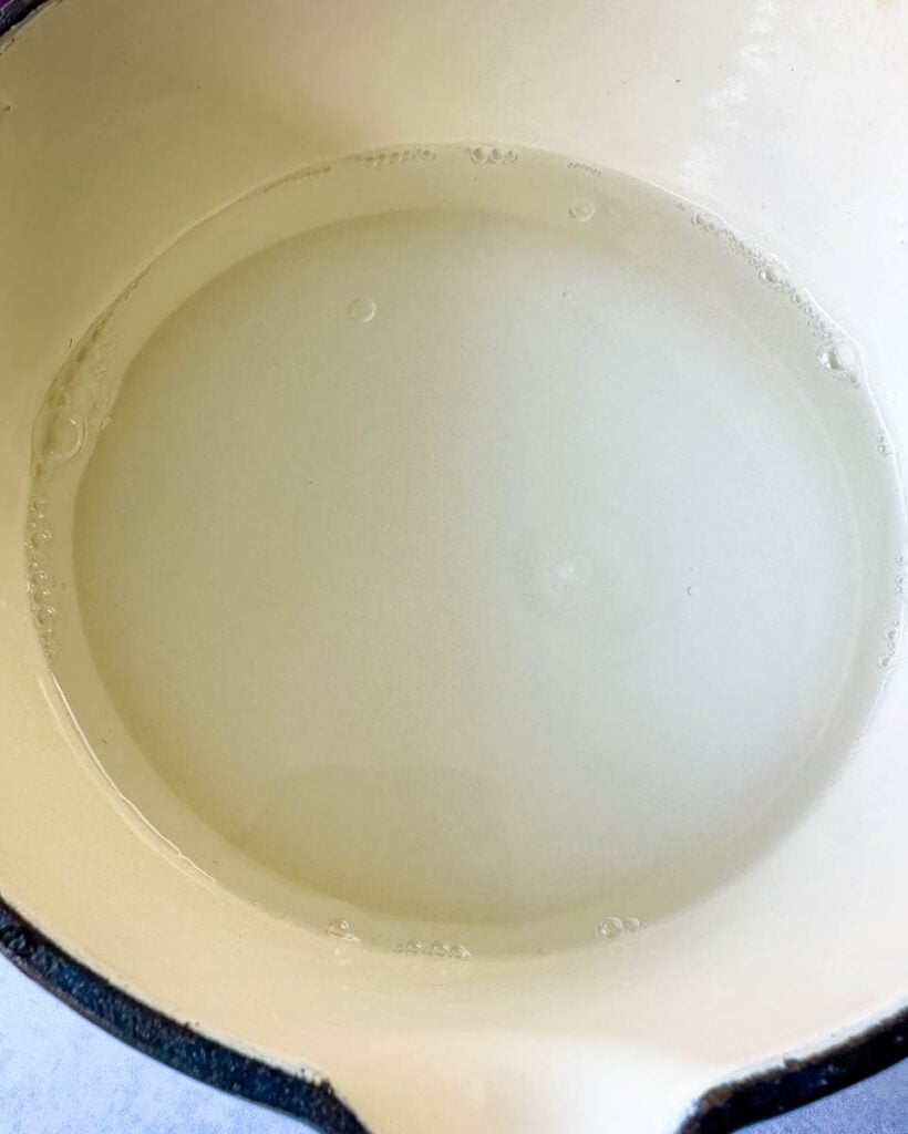 - Pour 2 cups of water into a pan on medium-high heat. Add in the sweetener and stir.